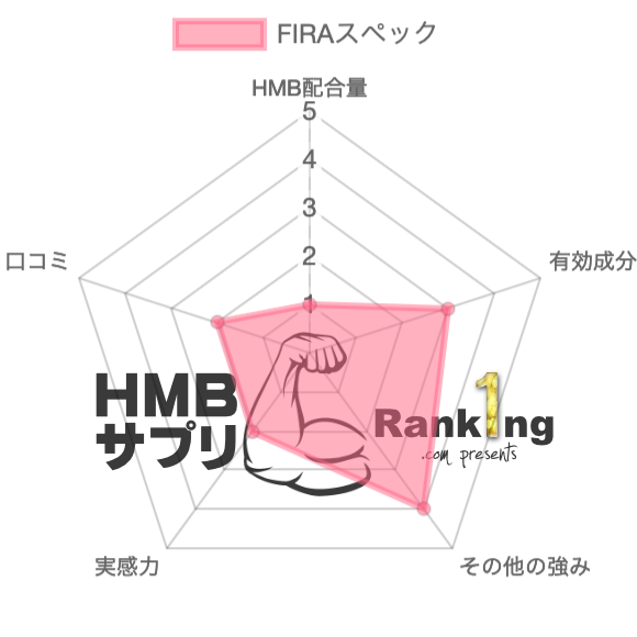 芸能人が愛用することで、知名度のある『FIRA』ですが、HMB量が不明なのもあって、HMBサプリとしては評価の難しいサプリです。